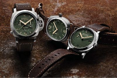 ล่าสุดทางแบรนด์ได้เปิดตัวสามรุ่นใหม่ที่จะวางขายเฉพาะบูติกของ Panerai เท่านั้น ประกอบไปด้วยสามเรือนประวัติศาสตร์ที่แฟนพันธ์แท้ต่างรู้จักกันเป็นอย่างดี คือ 1.Radiomir 8 Days Titanio – 45mm  กับ 2. Radiomir 1940 3 Days Acciaio – 47mm และ 3.Luminor 1950 Chrono Monopulsante 8 Days GMT Titanio – 44mm แค่ชื่อแต่ละรุ่นก็ยาวเหยียดเกินกว่าจะจำได้ ซึ่งนาฬิกาทั้ง 3 รุ่นนี้มีความโดดเด่นด้วยนาฬิกาหน้าปัดเขียว จึงไม่ค่อยเหมือนใครและนั้นทำให้น่าจะโดนใจใครหลายคน