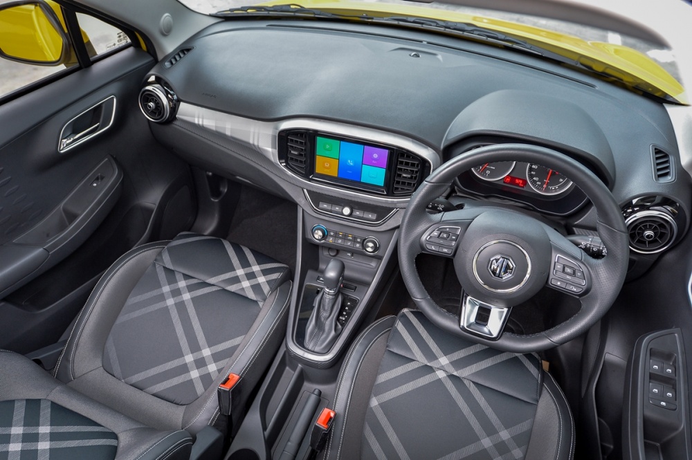 ก่อนที่ไปว่าถึงการทดสอบสมรรถนะรถ ขอมาสำรวจภายในห้องโดยสารของรถเอ็มจี 3 ใหม่ ซึ่งได้รับการออกแบบดีไซน์ให้ทันสมัยสไตล์โมเดิร์นจริง ๆ โดยเฉพาะพวงมาลัยทรงตัว D ดีไซน์อารมณ์สปอร์ต และยังมีคลิปร่องมือทำให้จับพวงมาลัยกระชับมือยิ่งขึ้น พร้อมกับคอนโซลหน้าเสริมด้วยลวดลายโมเดิร์นกับลายคาร์บอนเคฟลาร์ได้อย่างถูกใจที่ยังไม่เห็นมีในรถรุ่นเดียวกันที่ดีไซน์ในสไตล์แบบนี้ และเบาะนั่งที่ออกแบบมาในสไตล์เดียวกัน โดยเบาะนั่งด้านหน้าให้ความโอบกระชับพอสมควร แต่พนักพิงศีรษะดูจะดันหัวไปหน่อย และตัวฐานเบาะมีความยาวไม่มากนัก ทำให้ใต้ต้นขายื่นออกมาเพราะผู้ทดสอบตัวสูง 180 ซม.ซึ่งอาจทำให้เกิดความเมื่อยล้าได้เมื่อต้องขับระยะไกล