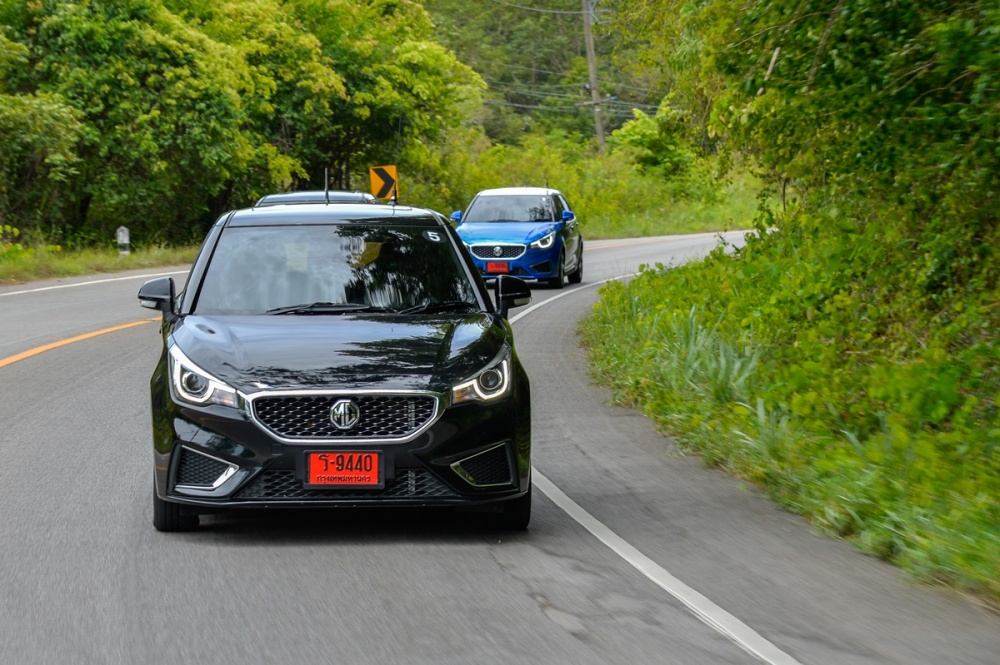 มาถึงในส่วนของช่วงล่างที่ต้องคุยให้รับรู้...โดยด้านหน้าแบบแมคเฟอร์สันสตรัท พร้อมเหล็กกันโคลง กับด้านหลังแบบทอร์ชันบีม ซึ่งทางเอ็มจีได้ปรับเซ็ทช่วงล่างมาอย่างลงตัว เพื่อเน้นให้ขับสนุกอย่างมั่นใจ เพราะในช่วงทางตรงที่ขับใช้ความเร็วสูงระดับ 140 กม./ชม. ตัวรถยังคงให้การทรงตัวที่นิ่งไม่ได้มีอาการหวิวให้รับรู้ หรือแม้จะลองขับแบบเปลี่ยนเลนกะทันหันก็ยังสามารถทรงตัวได้น่าพอใจ ควบคู่ไปกับพวงมาลัยที่ให้น้ำหนักหนืดกำลังดีในช่วงที่ใช้ความเร็วและให้ความแม่นยำใช้ได้ เช่นเดียวกับเส้นทางโค้งที่งานนี้ต้องเจออยู่พอสมควร แต่สบายใจได้เพราะช่วงล่างสามารถที่จะเกาะถนนได้อย่างหนึบแน่น...ไม่มีนิสัยดื้อโค้งแต่อย่างใด