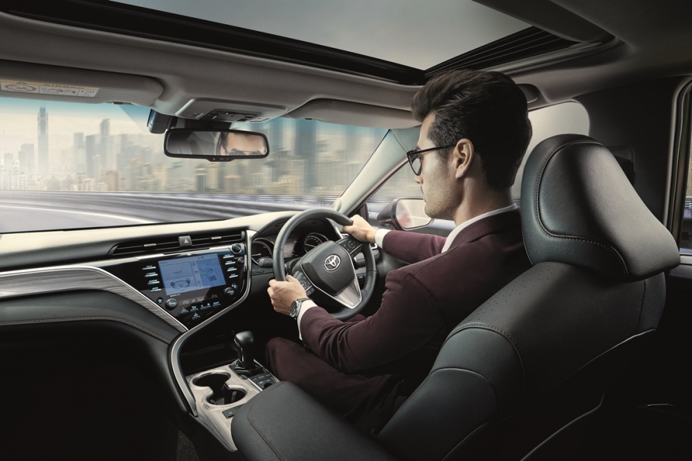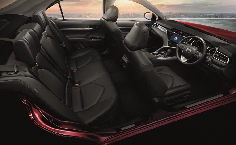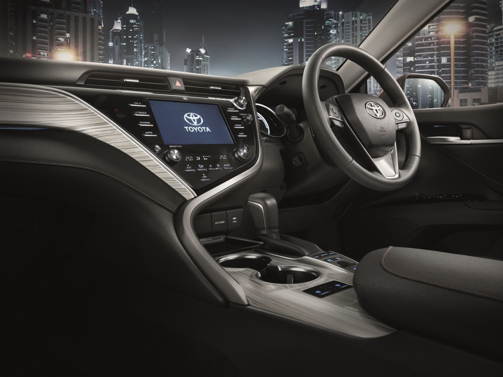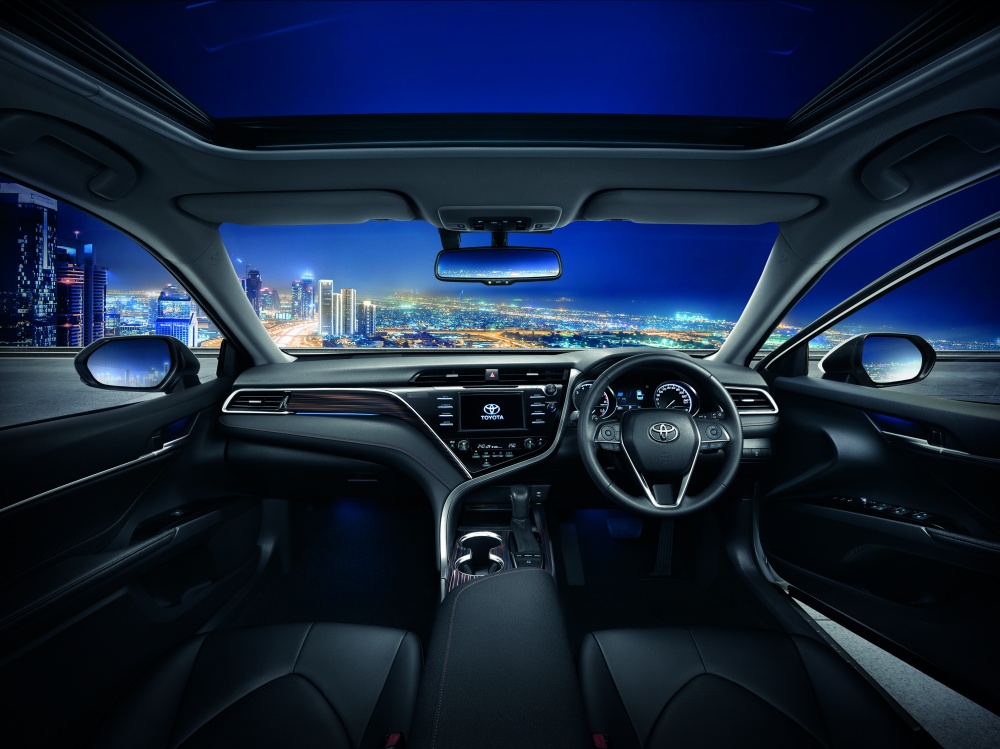 ภายในห้องโดยสารของ All-new Toyota Camry 2019 ได้รับการดีไซน์และบรรยากาศที่สปอร์ตมากขึ้น การจัดวางองค์ประกอบรอบห้องโดยสารต่ำลง โดยคอนโซลหน้าออกแบบให้เชื่อมโยงกันอย่างไร้ที่ติ พร้อมลาย Hybrid Onyx...สะท้อนภาพลักษณ์ระดับผู้นำ พร้อมมาตรวัดเรืองแสง Optitron พร้อมจอแสดงผลข้อมูลการขับขี่ TFT ขนาด 7 นิ้ว...เทคโนโลยีล้ำหน้า โดดเด่นด้วยดีไซน์สปอร์ตหรู แสดงสถานะการทำงานของระบบต่างๆ อย่างเด่นชัด