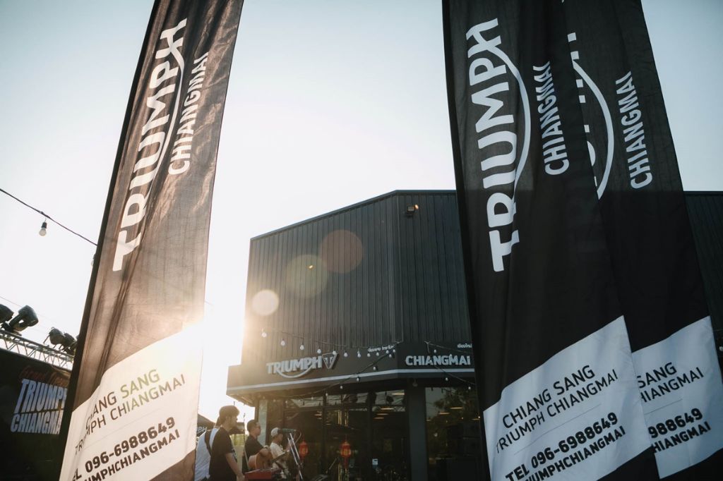 ได้ฤกษ์งามยามดี เปิดตัวอย่างเป็นทางการกับ “ไทรอัมพ์ เชียงใหม่” (Triumph Chiangmai) ภายใต้การดำเนินงานของ บริษัท เชียงแสง คลาสสิก ไบค์ จำกัด โดยโชว์รูมและศูนย์บริการไทรอัมพ์มาตรฐานระดับโลกแห่งนี้ ตั้งอยู่บนแลนด์มาร์คสำคัญของจังหวัดเชียงใหม่ ซึ่งสามารถตอบโจทย์ผู้ขับขี่บิ๊กไบค์ระดับพรีเมี่ยมทางโซนภาคเหนือให้ได้รับบริการอย่างเต็มที่