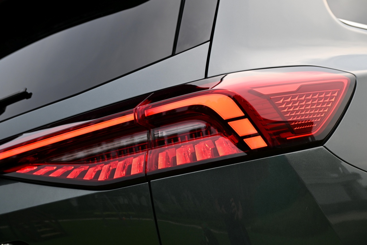 การออกแบบด้านท้าย เพิ่มรายละเอียดการผสมผสานความย้อนยุค และเทคโนโลยีล้ำสมัยด้วยไฟท้ายที่เป็นเส้นแนวนอนที่มีความเรียบง่ายลงตัวกับกล่องเก็บอุปกรณ์ทรงสี่เหลี่ยมที่เพิ่มความพิเศษด้วยการติดตั้งไฟเบรกเพิ่มเข้ามาพร้อมกล้องมองหลัง รวมทั้งเรดาห์ตรวจจับ (Transparent Radar) บริเวณมุมด้านขวา-ซ้ายของกันชนหลัง