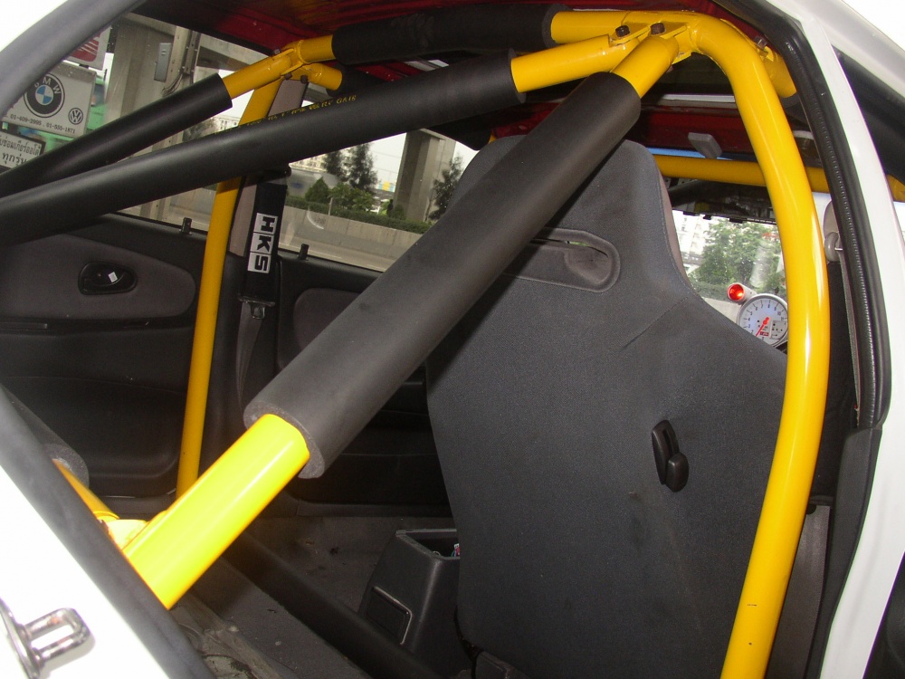 ส่วนเบาะนั่งเป็นแบบกึ่ง  BRACKET SEAT   สไตล์รถแข่งแรลลี่ โดยเป็นเบาะของ  RECARO   ที่มาในแบบผ้า ออกแบบให้โอบกระชับรับกับลำตัว  พร้อมกันนั้นได้มีการป้องกันบอดี้ด้วยการติดตั้งโรลบาร์ของ SITT  TURBO   โดยได้เลือกติดแบบ 6 จุด ประกอบด้วยด้านหน้า 2 จุด กลาง 2 จุด และหลัง 2 จุด   จึงมั่นใจได้ในคุณภาพ เพราะผลิตจากเหล็กกลมแบบกลวงขนาด 1.5 นิ้ว ที่เป็นงานฝีมือดัดเอง พร้อมพ่นด้วยสีเหลืองลูไซส์ ซึ่งให้ทั้งความแข็งแรงและความสวยงามที่ดูแล้วดุดัน ที่สำคัญยังช่วยในการทรงตัวได้ไม่น้อย โดยเฉพาะรถรุ่นเก่าแบบนี้