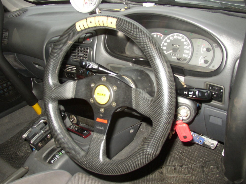 พอเข้ามาสัมผัสภายในห้องโดยสารดูจะขัดกับขุมพลังความแรง เพราะได้ทำการปรับแต่งในสไตล์รถแข่งเต็มตัว โดยได้ถอดชิ้นส่วนที่ไม่จำเป็นออกไป เพื่อเป็นการลดน้ำหนัก ไม่ว่าจะเป็นเบาะนั่งผู้โดยสาร  กับเบาะนั่งด้านหลัง หรือแม้แต่แผงเพดานยังเอาออก   ยกเว้นคอนโซลหน้าที่เป็นของเดิม  แต่แผงประตูสีดำยืมมาปิดแทน      ส่วนพวงมาลัยเป็นทรงสปอร์ตที่ฮิตกันของ  MOMO   แบบ  3 ก้านหุ้มหนังแท้ดำแบบมีรู  ช่วยให้หมุนได้คล่องมือ  ส่วนบรรดาเกจ์วัดคันนี้ขอแค่ตัวเดียวก็ไม่พอ ซึ่งติดเกจ์วัดรอบตัวใหญ่ของ AUTO METER ที่มาพร้อมกับชิพไลท์สีแดง  ที่สามารถปรับตั้งได้ตามรอบเครื่องเพื่อให้แสดงผล