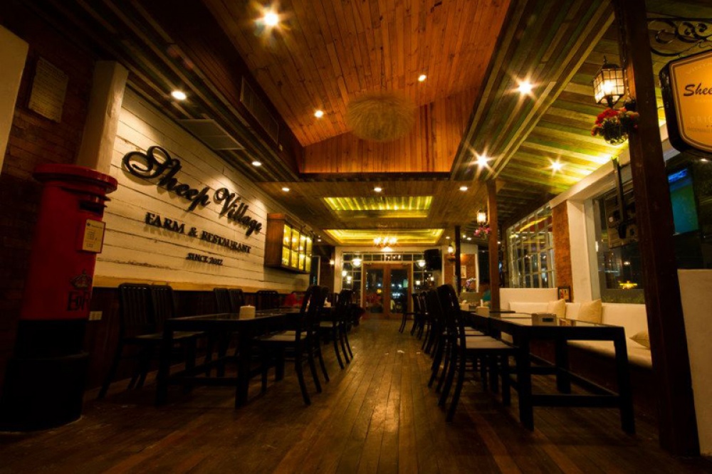 เมื่อเข้ามาถึงที่ Sheep Village  จะได้สัมผัสกับร้านอาหารสไตล์ฟาร์ม ซึ่งบริหารงานโดย ทีมงานเด็กเลี้ยงแกะ   ที่สร้างบรรยากาศแบบเดียวกับหมู่บ้านยุโรป  โดยด้านหน้าจะทำเป็นคอกเลี้ยงแกะ และเป็ด ไก่ พร้อมกับมีมุมต่าง ๆ ให้ถ่ายรูปกันได้อย่างเต็มที่ สามารถเดินชมวิวได้อย่างสบาย  และบริเวณกลางร้านจะตกแต่งด้วยกังหันลมขนาดใหญ่  ตามต้นไม้ยังประดับด้วยโคมไฟ แถมติดจอโปรเจคเตอร์ขนาด 70 นิ้วให้ได้ชมบอลกันอย่างเต็มตา