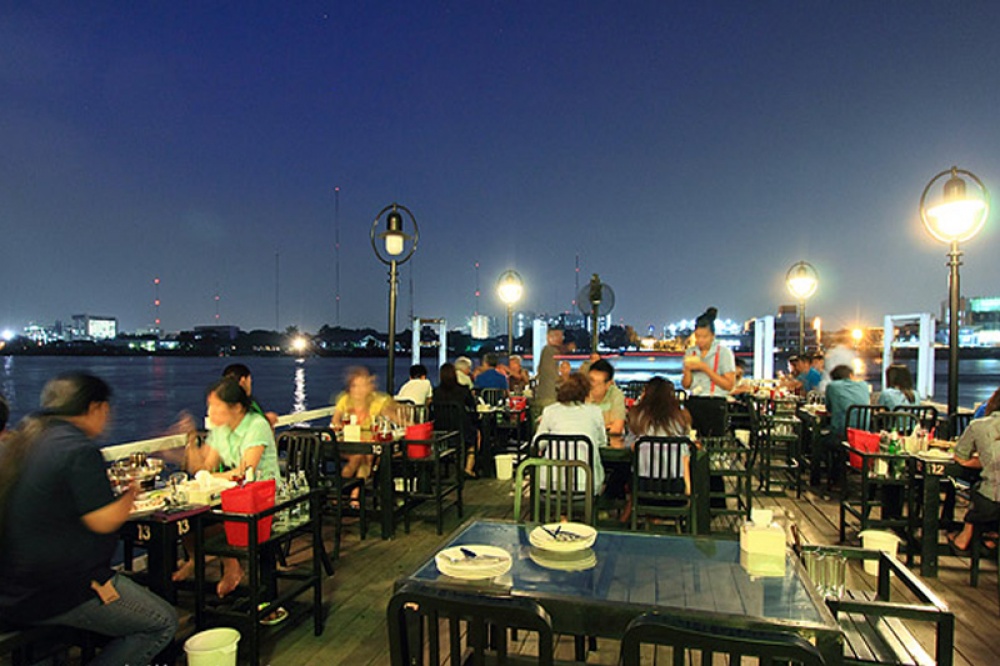 สำหรับผู้ชื่นชอบบรรยากาศริมแม่น้ำ   ที่นี่มีให้เลือกนั่งเช่นกัน โดยทำเป็นเทอเรจยื่นออกไปในแม่น้ำเจ้าพระยา  ซึ่งมีอยู่ 15 โต๊ะที่จะได้สัมผัสอยู่ริมแม่น้ำอย่างใกล้ชิดในสไตล์รีเวอร์ไซด์  จนต้องโทรจองกันเป็นเดือน และรองลงเป็นจะที่นั่งริมเขื่อนจัดเป็นแถวยาวอีก 18 โต๊ะ  เรียกว่า มีหลากหลายมุมที่ให้เลือกนั่งได้อย่างประทับใจ จึงทำให้นักดื่มนักเที่ยวให้ความสนใจกันอย่างมากในแต่ละค่ำคืน