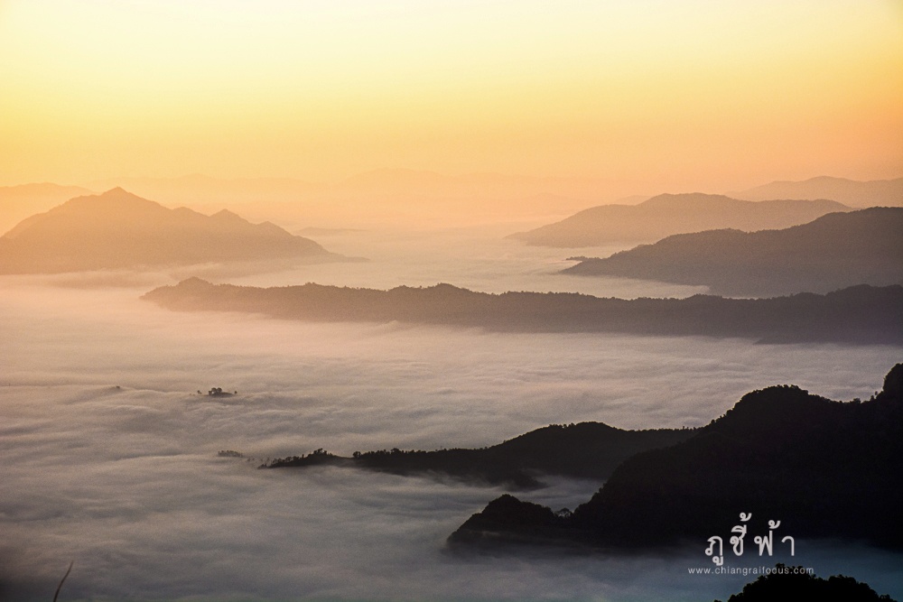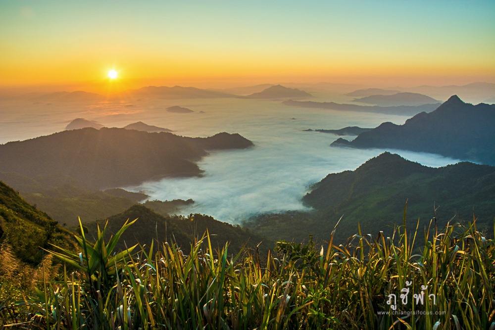 แต่นั้นยังน้อยไปจนเมื่อพระอาทิตย์เริ่มพ้นขอบฟ้าจะเปล่งประกายแสงสว่างออกมาด้วยสีสันที่ผสมผสานกันอย่างลงตัวทั้งสีส้มปนเหลืองที่เป็นแนวยาวสุดขอบฟ้า ซึ่งธรรมชาติเข้าใจสร้างสรรค์ออกมาได้อย่างสวยงาม ผนวกกับท้องทะเลหมอกที่แพร่กระจายปกคลุมไปทั่ว ทำให้มองเห็นทิวเขาที่สลับซับซ้อนที่อยู่เบื้องล่าง สร้างความตื่นตาตื่นใจในชั่วขณะหนึ่ง และอีกมุมหนึ่งยังแซมด้วยทุ่งหญ้าดอกโคลงเคลง ที่มาช่วยเติมเต็มให้ภาพที่เห็นสวยงามกว่าที่คิดไว้เสียอีก