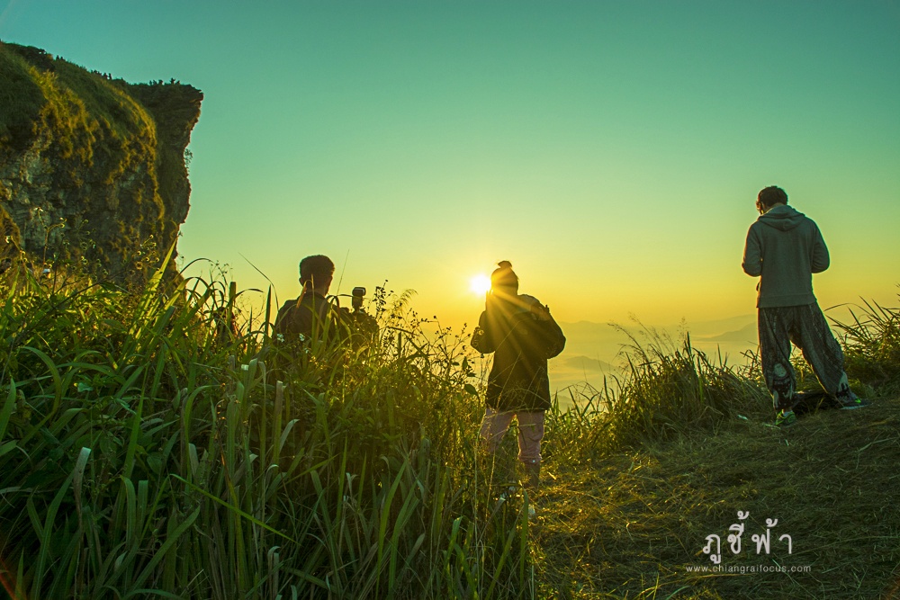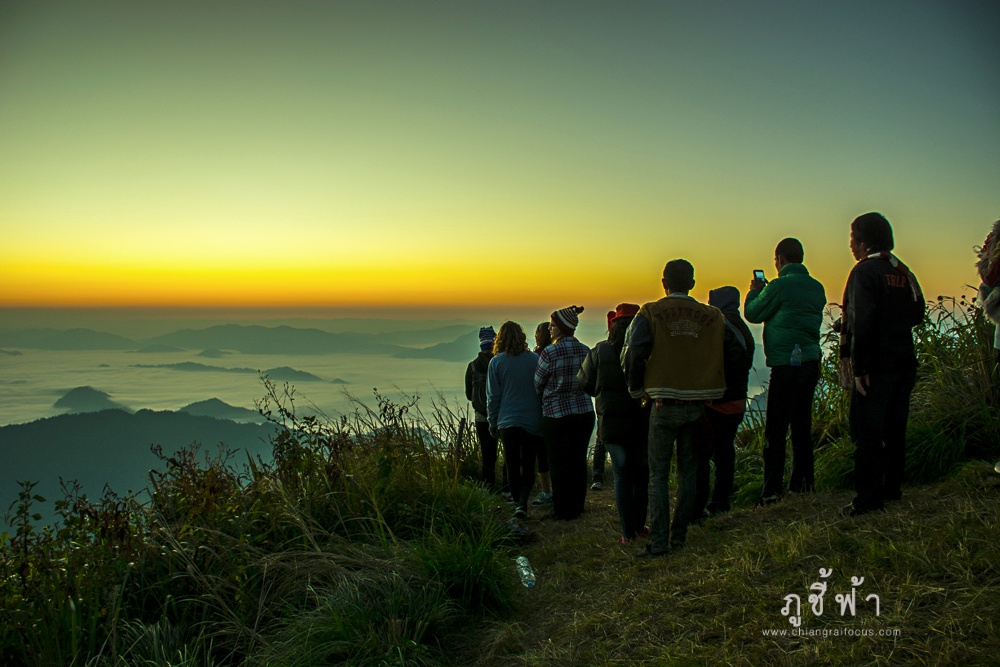 ถึงจะเป็นช่วงเวลาที่ไม่นานกับการยืนชมวิว ขณะที่ดวงตะวันกลมโตสีส้มพ้นขอบฟ้า แต่ถึงจะผ่านพ้นไปแล้วผู้คนที่ตั้งหน้าตั้งตามาชมวิวอยู่ด้วยกันก็ยังคงยืนปักหลักไม่ได้ถอยกลับไป เพราะเวลาแห่งการชื่นชมไม่ได้หมดลงแค่นั้น เรายังคงมองไปไกลสุดสายตากับทะเลหมอกที่เวิ้งว้างกว้างไกล พร้อมกับสูดอากาศบริสุทธิ์เข้าเต็มปอดเหมือนกับได้เติมพลังให้กับชีวิต และหากรอจนสายหมอกถูกความร้อนระเหยหมดแล้ว ก็ยังคงมองเห็นสายน้ำโขงไหลคดเคี้ยว ท่ามกลางผืนป่าของฝั่งลาวที่เขียวขจีสมบูรณ์อีกด้วย
