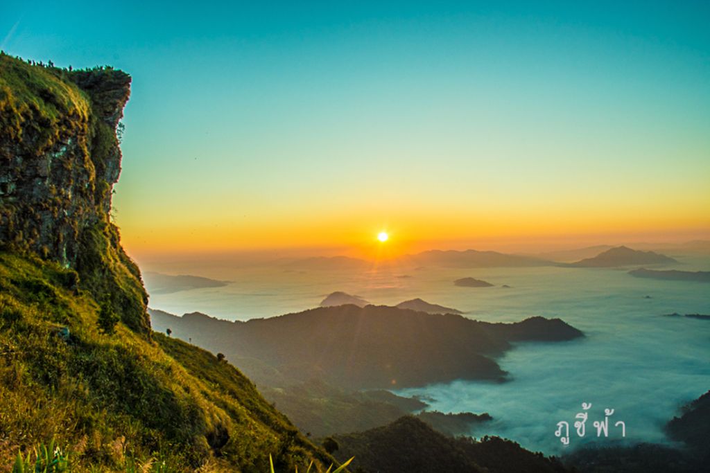 เมื่อเอ่ยถึงภูชี้ฟ้า ใครที่เคยสัมผัสมาแล้วต่างยกย่องให้เป็นสุดยอดจุดชมวิวทะเลหมอกและชมดวงอาทิตย์ที่ติดอันดับแนวหน้าของเมืองไทย ซึ่งทุกๆ ปีในช่วงฤดูหนาวนักท่องเที่ยวจะหลั่งไหลกันมาเฝ้ารอชมตะวันโผล่พ้นขอบฟ้าท่ามกลางทะเลหมอกบนขอบหน้าผา ที่ทำมุมประมาณ 45 องศาเหมือนชี้ขึ้นไปบนท้องฟ้า จึงเป็นที่มาของชื่อว่า “ ภูชี้ฟ้า “ บนระดับความสูงถึง 1,646 เมตร