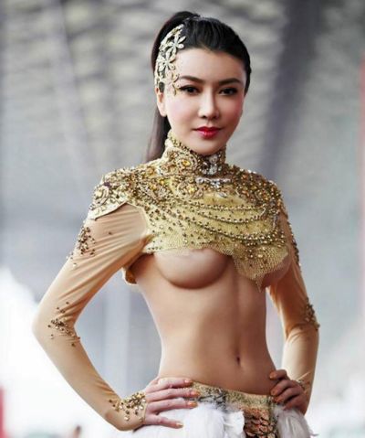 พริตตี้จีนกล้าโชว์อกเปลือย