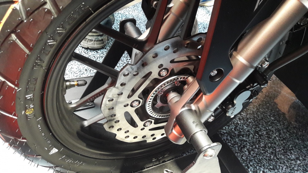 ขณะที่ล้อหน้ามีขนาดใหญ่กว่าล้อหลังตามแบบฉบับรถสายลุย โดยล้อแม็กได้ออกแบบในสไตลล์ตัวอักษร V มากับล้อหน้าขอบ 14 นิ้วขนาดยางหน้า 110/80/14 กับล้อหลังขอบ 13 นิ้วกับยางหลังขนาด 130/70/13 โดยหน้ายางใหญ่พิเศษพร้อมดอกยางแบบรถแนว ON-OFFที่ออกแบบให้สามารถยึดเกาะได้ดีและสามารถขี่ลุยไปได้ในทุกสภาพถนนทั้งทางเรียบและทางขรุขระ พร้อมด้วยระบบดิสถ์เบรกหน้า 2 คาลิปเปอร์ และดิสถ์เบรกหลังคาลิปเปอร์เดี่ยว กับจานดิสก์เบรกหน้า-หลังแบบ Dise Wave ในลวดลายแบบคลื่นขนาดด้านหน้า 240 มม. และด้านหลังขนาด 220มม. และยังเสริมความปลอดภัยด้วยระบบเบรก ABS